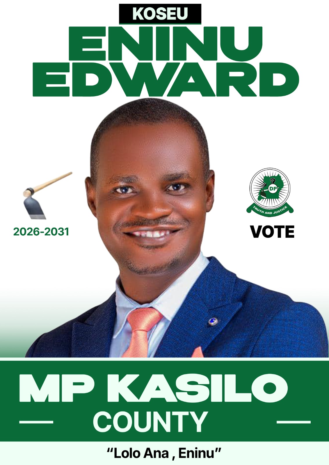 SERERE DISTRICT - The Democratic Party (DP) has officially unveiled veteran journalist Eninu Edward as its flag bearer for the Kasilo County parliamentary race, setting the stage for a competitive election in the constituency.